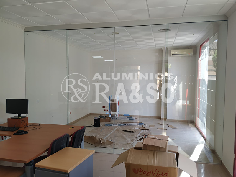 La solución instalada ofrece una estética limpia y moderna, facilitando la reorganización de espacios y optimizando el aprovechamiento de la luz natural. Este tipo de acristalamiento es una opción práctica y elegante para proyectos profesionales y reformas de espacios corporativos.