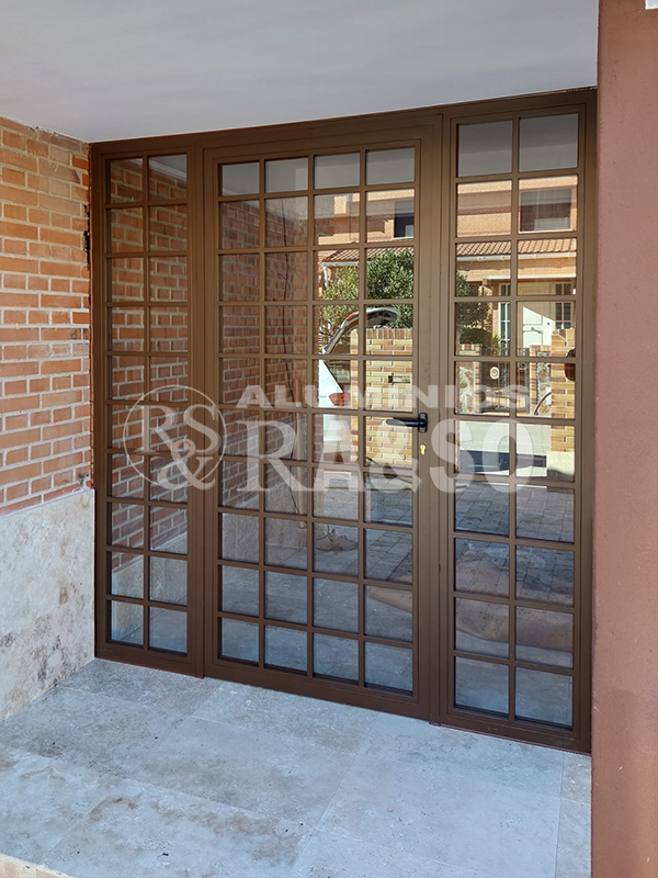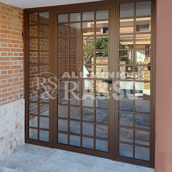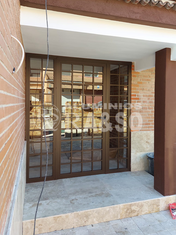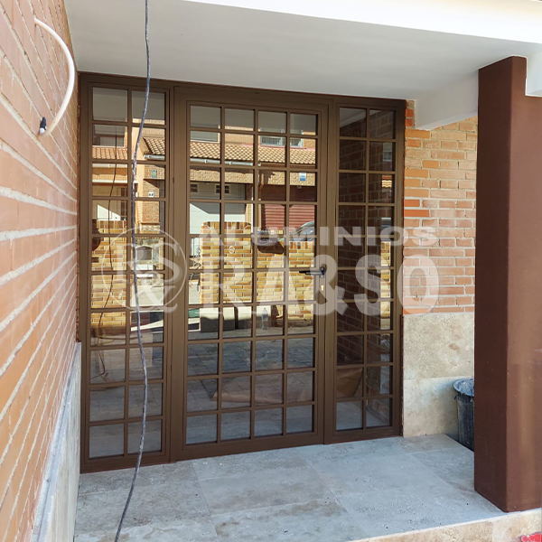 En este proyecto se llevó a cabo la fabricación e instalación de un cerramiento de exterior de aluminio y vidrio, diseñado para cerrar un porche manteniendo la estética original de la vivienda. Se optó por perfilería de aluminio en acabado bronce con cuarterones, logrando un estilo clásico y elegante que encaja perfectamente con el entorno de ladrillo visto.