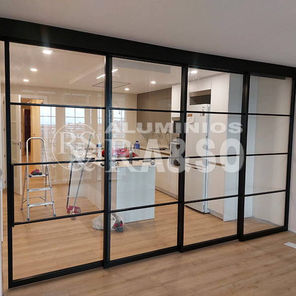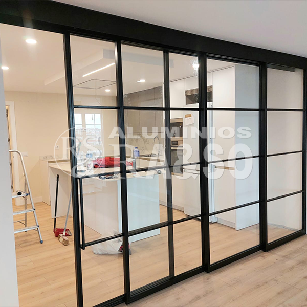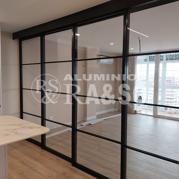 Este tipo de cerramientos interiores de aluminio en Madrid son una solución práctica y estética, muy demandada en reformas de viviendas, ya que combinan diseño contemporáneo, durabilidad y bajo mantenimiento.