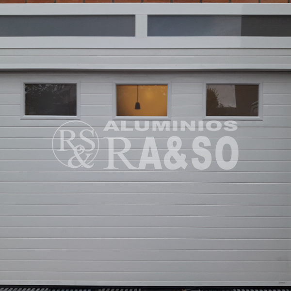 Puerta de garaje seccional de aluminio blanca con ventanas