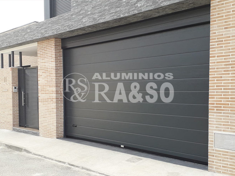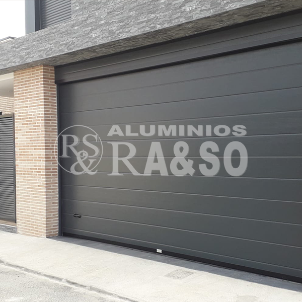 La puerta de aluminio dispone de un sistema seccional de apertura vertical que permite un aprovechamiento óptimo del espacio, ofreciendo un funcionamiento silencioso, seguro y cómodo para el uso diario. Los paneles horizontales aportan uniformidad visual y gran resistencia estructural.