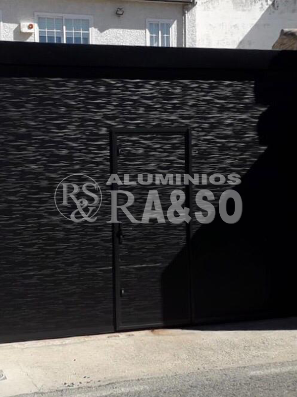 Puerta seccional de garaje de aluminio con acabado negro